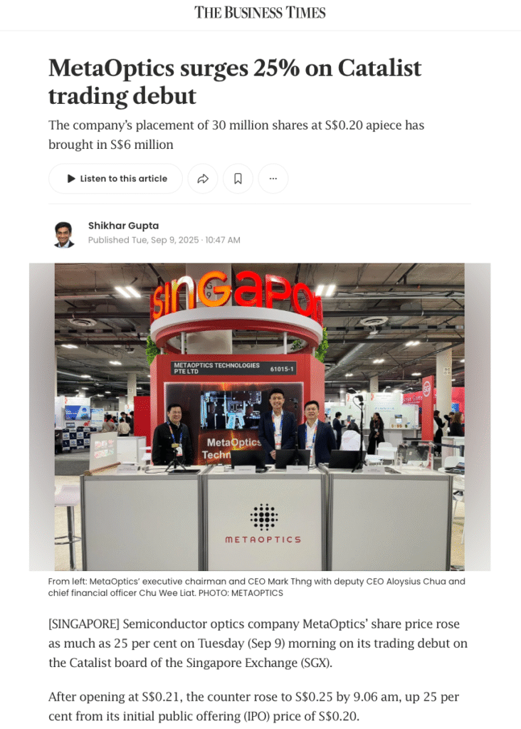 Deals & Projects09/09/2025IPO of MetaOptics on the Singapore Exchange